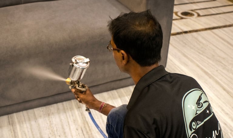 Spunge Living delivers advanced interior protection solutions designed to enhance durability, maintain aesthetics, and reduce long-term maintenance costs. Using modern technologies such as Nano Fabric Coating, Surface Protection Films, and Epoxy Resin applications, we help customers safeguard sofas, tables, kitchen counters, and flooring from stains, scratches, spills, and daily wear. Our expert team ensures precise application, transparent guidance, and long-lasting results—making home and commercial interiors cleaner, safer, and more resilient.